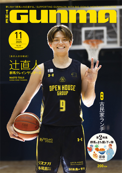 月刊 ザ・グンマ 2025年11月号の表紙を飾るのは群馬クレインサンダーズのキャプテン、辻直人選手#9です!『あの人の分岐点』でインタビュー。オープンハウスアリーナで撮影しました。第1特集は県内ほっこり古民家カフェ。古民家をリノベーションしてのセンス良いカフェが増えてきました。第2特集は沼田周辺の紹介です。熊に注意。
