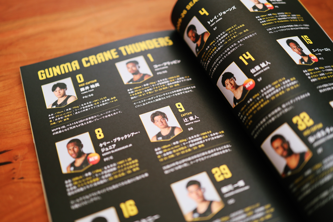 | 2025-26 群馬クレインサンダーズ公式ガイドブック | 発売日:2025年10月15日 | 仕様:B5/全80P/定価:¥1,200(税込)| Client_株式会社群馬クレインサンダーズ - アートディレクション:佐藤正幸(Maniackers Design) 表紙デザイン:佐藤正幸(Maniackers Design) 本文デザイン:相川直希/善養寺良子/石井正美(AIR) 写真:新井良仁(株式会社創美社)/勝井将弘(株式会社創美社)/青柳圭介/竹見脩吾/國分唯斗 イラスト:佐藤麻美(Maniackers Design)/須藤りほこ マンガ、イラスト:株式会社ダブドリ インタビュー:株式会社ダブドリ 編集:鈴木亨(株式会社ザ・グンマ)/寺居和美(AIR)/岡田ジュン(AIR) 印刷製本:ジャーナル印刷株式会社 制作・編集:株式会社ザ・グンマ |