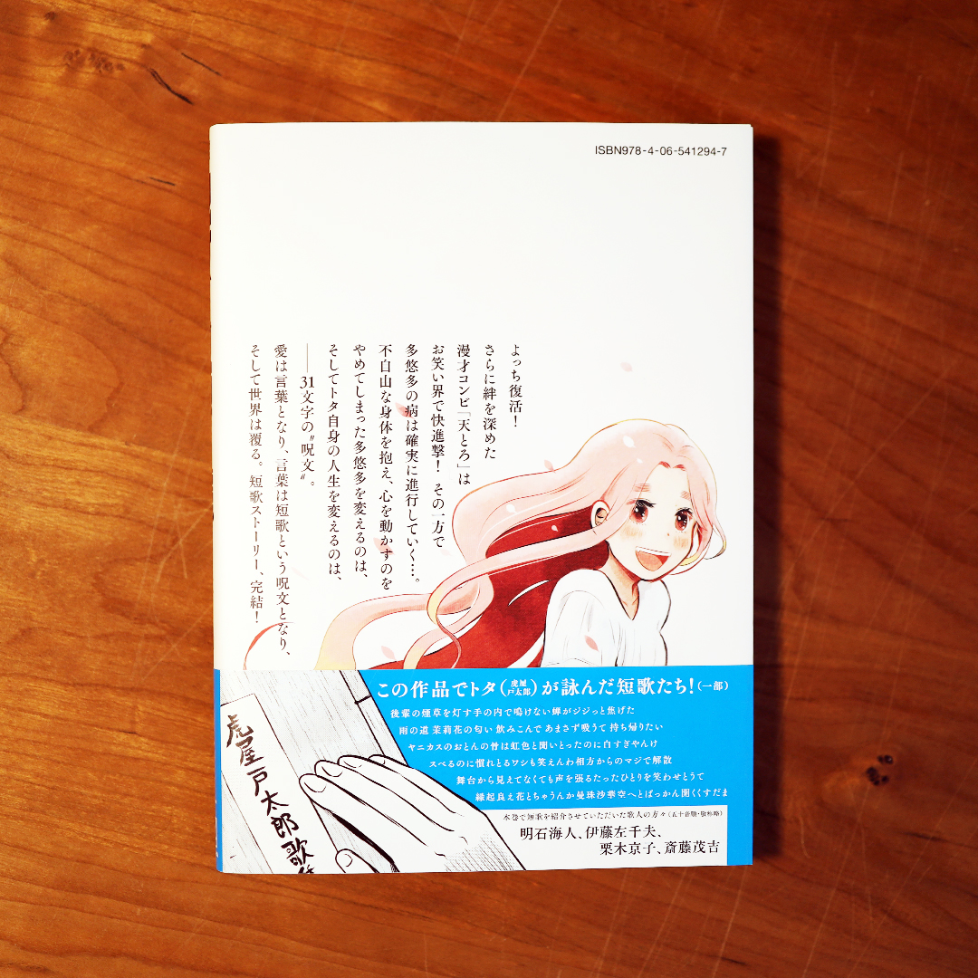 | | Tittle_コミックス『呪文よ世界を覆せ』第4巻/ニコ・ニコルソン:著/KCデラックス | 発売日:2025年10月17日 | Client_株式会社講談社 月刊少年マガジン編集部 | Cover Design | Art Direction & Design_Masayuki Sato | Illustration_ニコ・ニコルソン nico nicholson | Comment_【月マガ基地:連載】よっち復活!さらに絆を深めたトタとよっちの漫才コンビ「天とろ」は、お笑い界で快進撃!その一方で多悠多の病は少しずつだが確実に進行していく。不自由な身体を抱えて、心を動かすのをやめてしまった多悠多を変えるのは…、そしてトタ自身の人生を変えるのは…、31文字の“呪文”。愛は言葉となり、言葉は短歌という呪文となり、そして世界は覆る。短歌ストーリー、完結! |