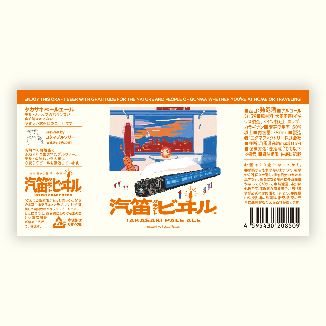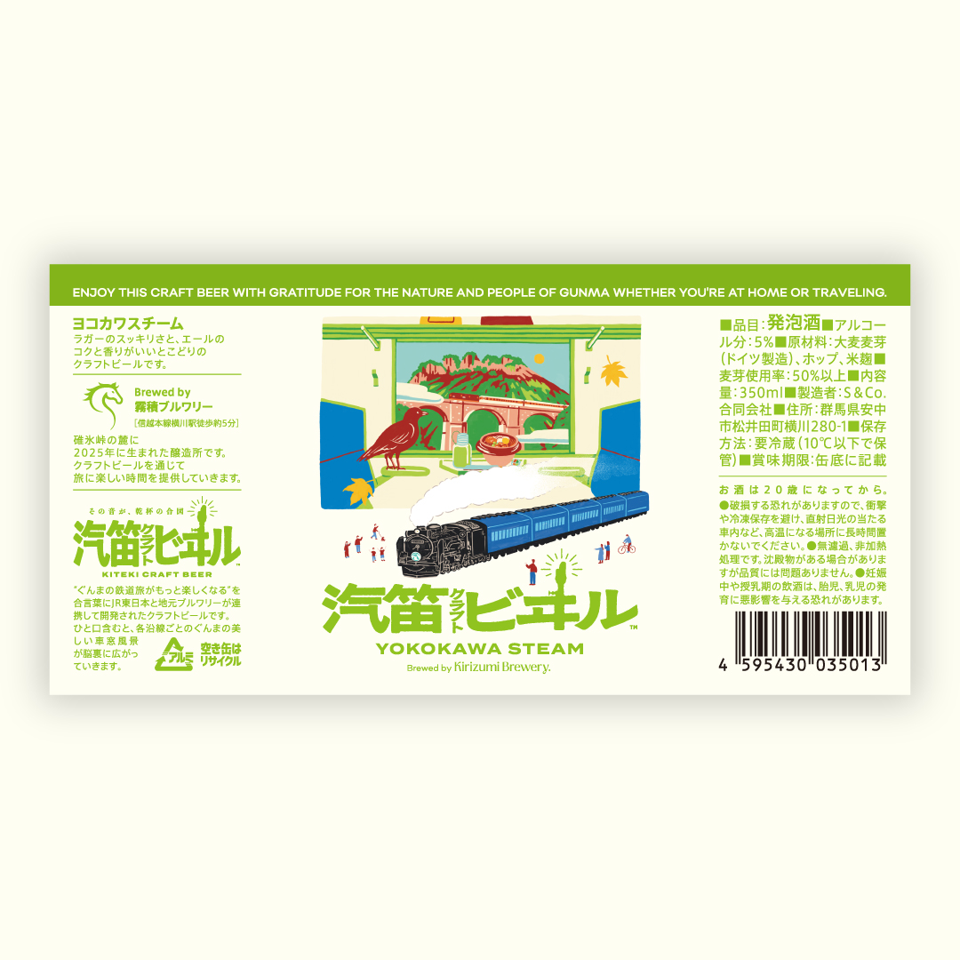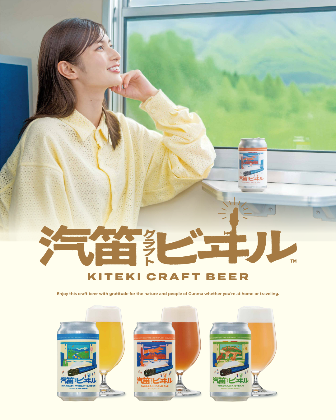 | | Tittle_その音が、乾杯の合図 汽笛クラフトビヰル KITEKI CRAFT BEER(上越線 ver. MINAKAMI WHEAT SAISON/高崎駅 ver. TAKASAKI PALE ALE/信越本線 ver. YOKOKAWA STEAM)| Client_東日本旅客鉄道株式会社 高崎支社 | Creative Direction_澁澤健剛(ジェイアール東日本企画)| Label Design, Logo Design_Masayuki Sato | Illustration_Mami Sato | Poster Design_湯浅大輔(総合PR)| Photo, Movie_佐川航大 | Model_大島璃乃(Sony Music Artist) - | Comment_“ぐんまの鉄道旅がもっと楽しくなる”を合言葉にJR東日本と地元ブルワリーが連携して開発されたクラフトビールです。ひと口含むと、各沿線ごとのぐんまの美しい車窓風景が脳裏に広がっていきます。PR動画・ポスターには群馬県桐生市出身の俳優、モデルの大島璃乃さん(Sony Music Artist)が出演。2025年10月1日発売開始です。 - 【販売場所】 高崎駅:群馬いろは/HANAGATAYA高崎/銘品館高崎/NewDays 上毛高原駅:NewDays 渋川駅:NewDays ※NewDaysのみ10月7日販売開始 ※その他、10月1日〜4日に大宮駅で開催される『上州ぐんま産直市』でも販売。 - MINAKAMI WHEAT SAISON | ミナカミウィートセゾン:小麦モルトを使用したまろやかな飲みやすさと個性が両立されたビールです。 Brewed by オクトワンブルーイング[上越線水上駅徒歩約15分] 水上温泉にあるタップルーム。谷川岳の麓にて清涼な湧水を用いた自然にもやさしいビールをつくっています。 ラベルには『谷川岳』『利根川源流』『イヌワシ』が描かれ、自然豊かなみなかみ町の車窓風景が映し出されています。 - TAKASAKI PALE ALE | タカサキペールエール:モルトとホップのバランスが良く飽きのこないやさしい飲み口のエールです。 Brewed by コタマブルワリー[高崎駅徒歩約20分] 高崎市の路地裏で2024年に生まれたブルワリー。モルトの味わいを大事に心安らぐビールを醸造しています。 ラベルには『高崎市街から眺める観音山丘陵と白衣観音』『高崎だるま』『バイオリン(群馬交響楽団)』が描かれ、夕暮れ時のエモーショナルな都市風景が切り取られています。 - YOKOKAWA STEAM | ヨコカワスチーム:ラガーのスッキリさと、エールのコクと香りがいいとこどりのクラフトビールです。 Brewed by 霧積ブルワリー[信越本線横川駅徒歩約5分] 碓氷峠の麓に2025年に生まれた醸造所です。クラフトビールを通じて旅に楽しい時間を提供していきます。 ラベルには『妙義山』『めがね橋』『峠の釜めし』『ヤタガラス』が描かれており、趣深い歴史が見どころの信越本線の車窓風景を表現しています。 |