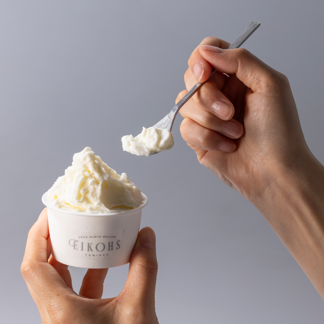 | | Tittle_Tittle_TECH MEETS GELATO EIKOHS TOMIOKA ICE CREAM | ラベルデザイン ver.1 | 2025-2026 | Client_株式会社栄光製作所(EIKOHS)| Art Direction_Fumiko Nakajima, Mami Sato, Masayuki Sato | Design_Masayuki Sato | Photo_Shinya Kigure (Lo.cul.p) |
