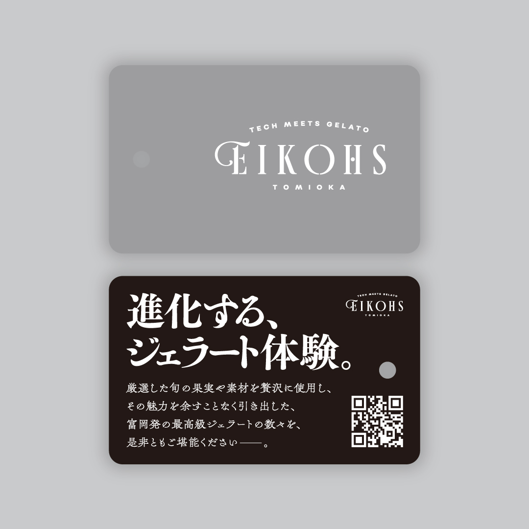 | | Tittle_TECH MEETS GELATO EIKOHS TOMIOKA | Shop Card | Client_株式会社栄光製作所 | Art Direction_Fumiko Nakajima, Mami Sato, Masayuki Sato | Design_Masayuki Sato |