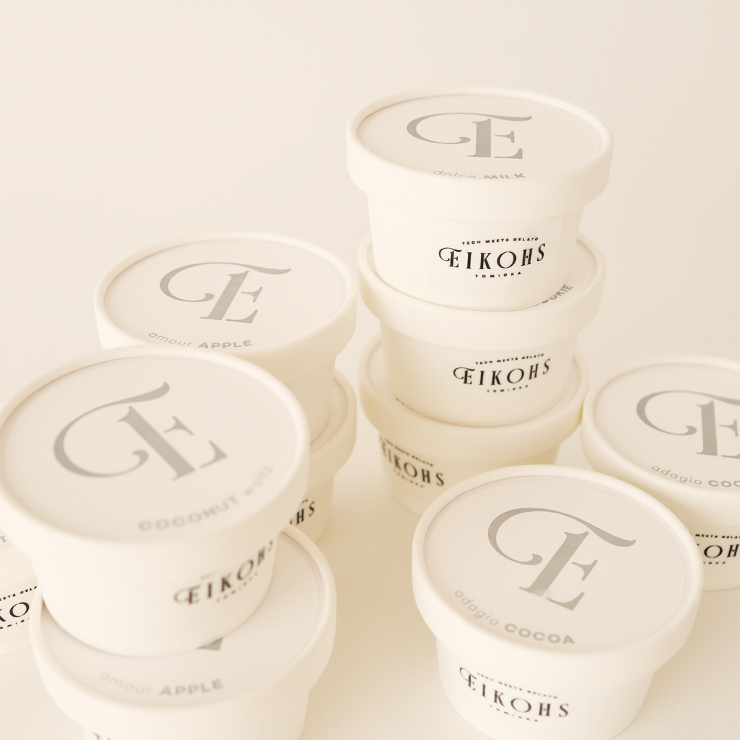 | | Tittle_Tittle_TECH MEETS GELATO EIKOHS TOMIOKA ICE CREAM | フタラベルデザイン ver.1 | 2025 | Client_株式会社栄光製作所(EIKOHS)| Art Direction_Fumiko Nakajima, Mami Sato, Masayuki Sato | Design_Masayuki Sato |