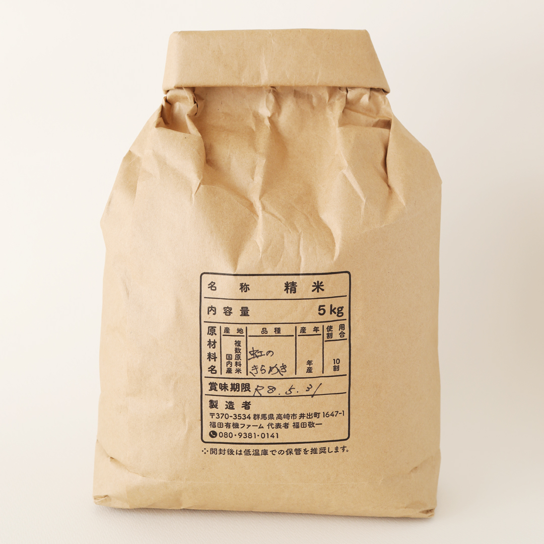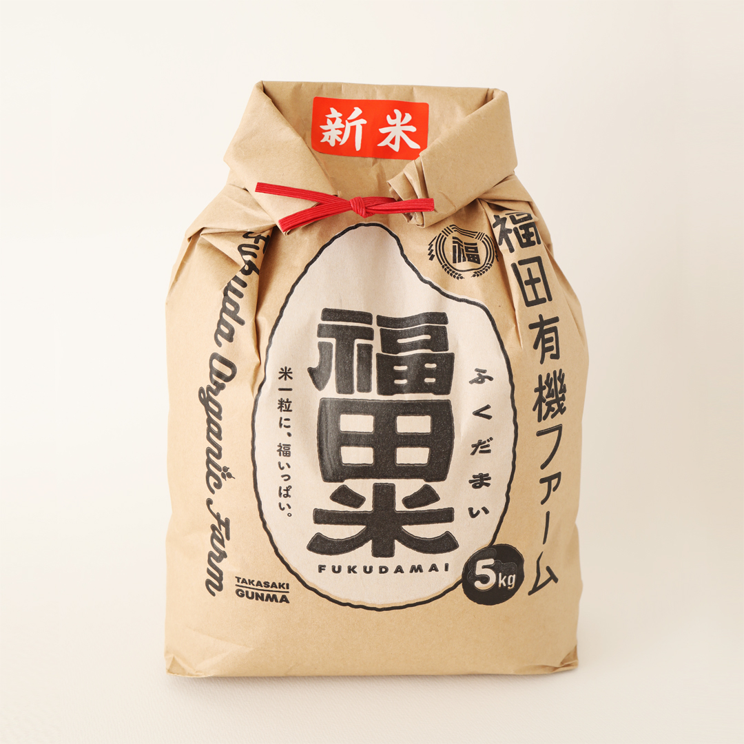 | | Tittle_群馬県高崎市産 福田米 ふくだまい(5kg)米一粒に、福いっぱい。(品種:虹のきらめき)| 米袋デザイン | 2025 | Client_福田有機ファーム | Art Direction & Design_Masayuki Sato |