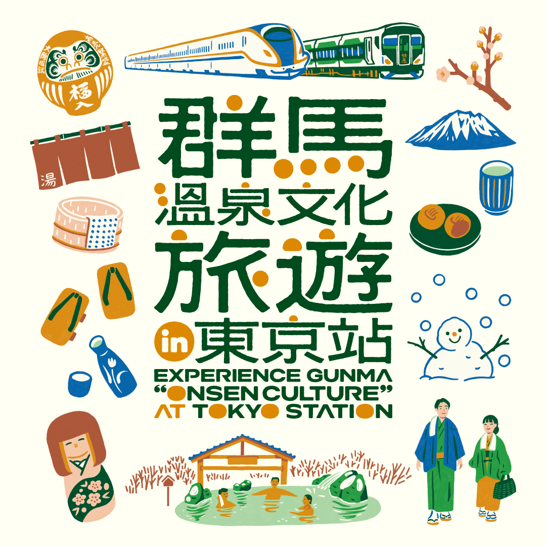 | | Tittle_群馬温泉文化旅遊 in 東京站 EXPERIENCE GUNMA "ONSEN CULTURE" AT TOKYO STATION | Logo, KeyVisual, B1, A4 | Client_東日本旅客鉄道株式会社 高崎支社 | Creative Direction, Copy_澁澤健剛(ジェイアール東日本企画 高崎支社)| Illustration_Mami Sato | Art Direction & Design_Masayuki Sato - | 主催:東日本旅客鉄道株式会社 高崎支社 | 後援:公益財団法人群馬県観光物産国際協会、台南市政府観光旅遊局 | 協力:台灣捷爾東事業開發股彬有限公司、創造旅行社股彬有限公司 - 温泉王国ぐんまを詳しく知るにはこちらから! 想深入了解温泉王國・群馬,請點這裡! Learn more about Onsen Kingdom Gunma here! - ![]() 日本の温泉文化は、ユネスコ無形文化遺産登録を目指しています。 日本的温泉文化正以登録為聯合國教科文組織(UNESCO)非物質文化遺産為目標。 Japanese onsen culture is aiming for inscription on UNESCO's Intangible Cultural Heritage list. |